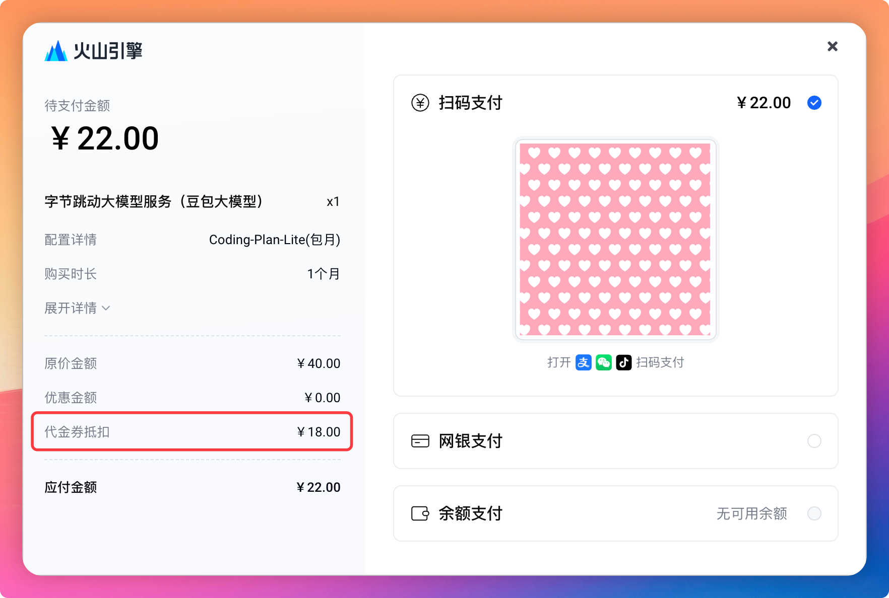 选择对应的 Coding Plan 支付即可: