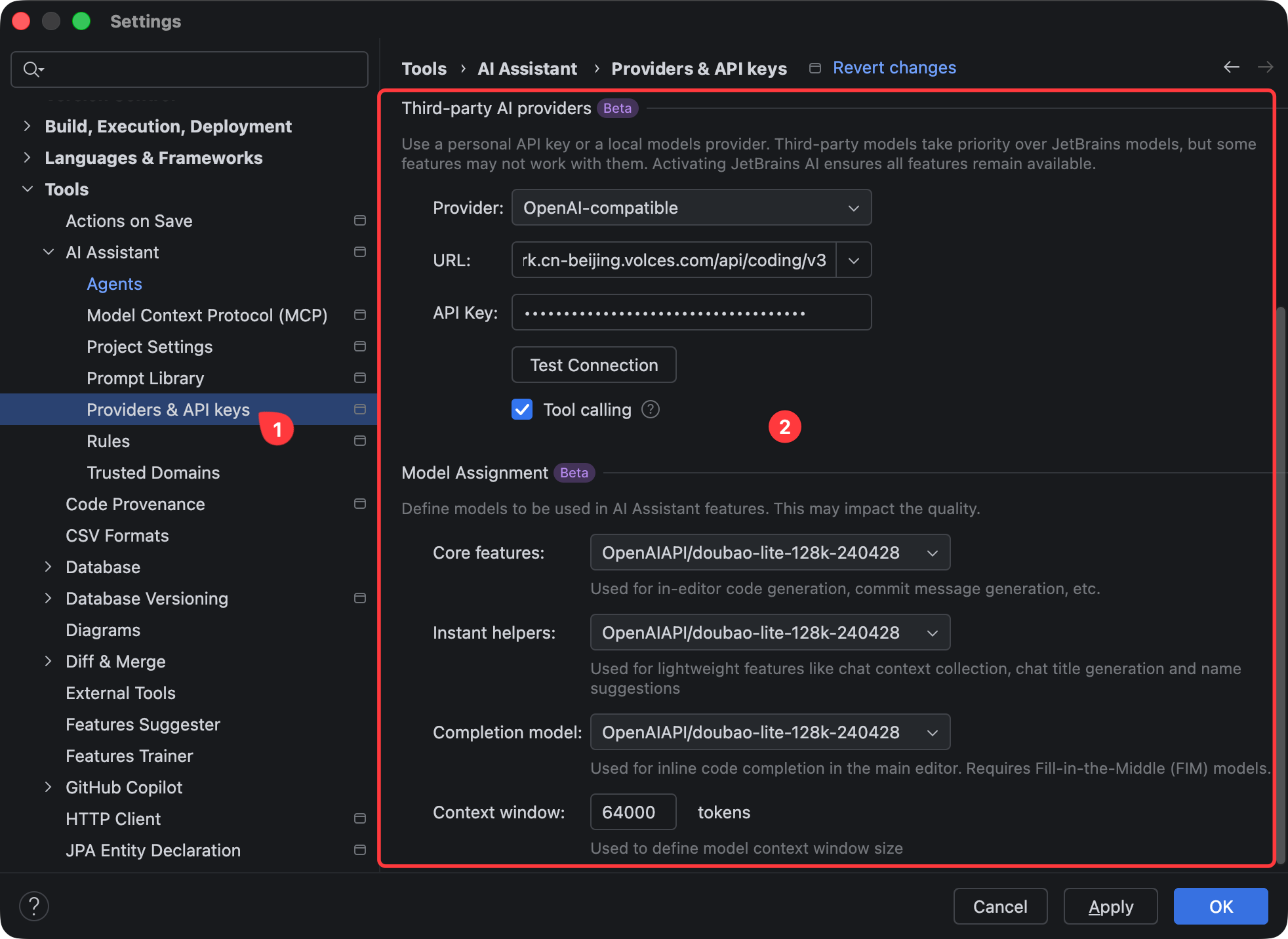 还可以通过 API 的方式接入火山方舟的 Coding Plan,配置方法如图所示: