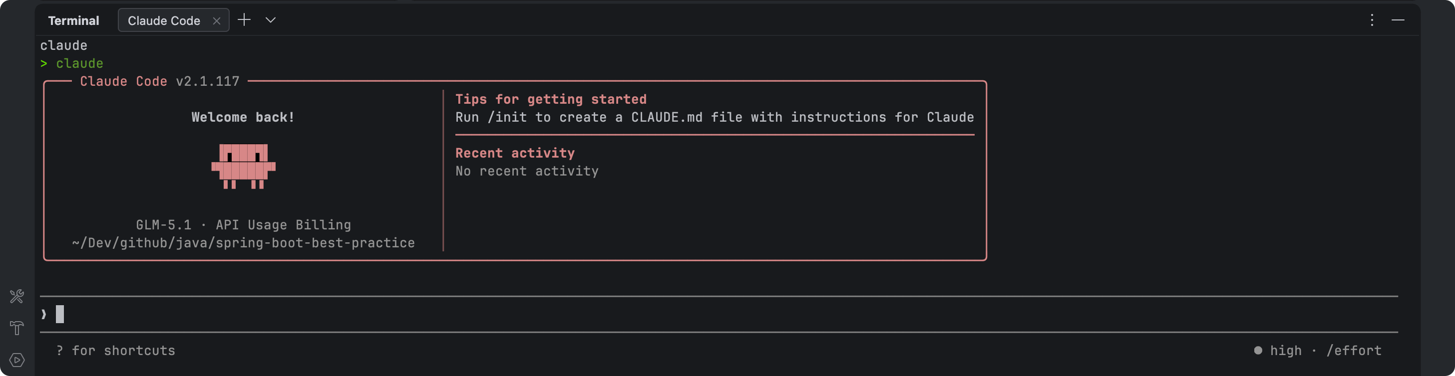点击面板中的 Claude Code 按钮就能快速启动 Claude Code,启动成功后就可以在 IDEA 中使用了。