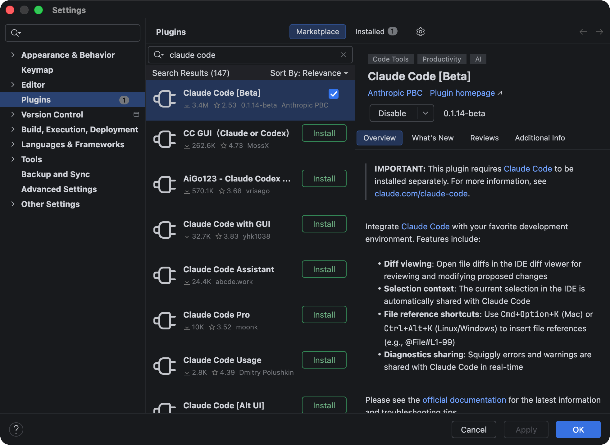 在 IntelliJ IDEA 中使用 Claude Code 也是一样的,首先安装 Claude Code 插件: