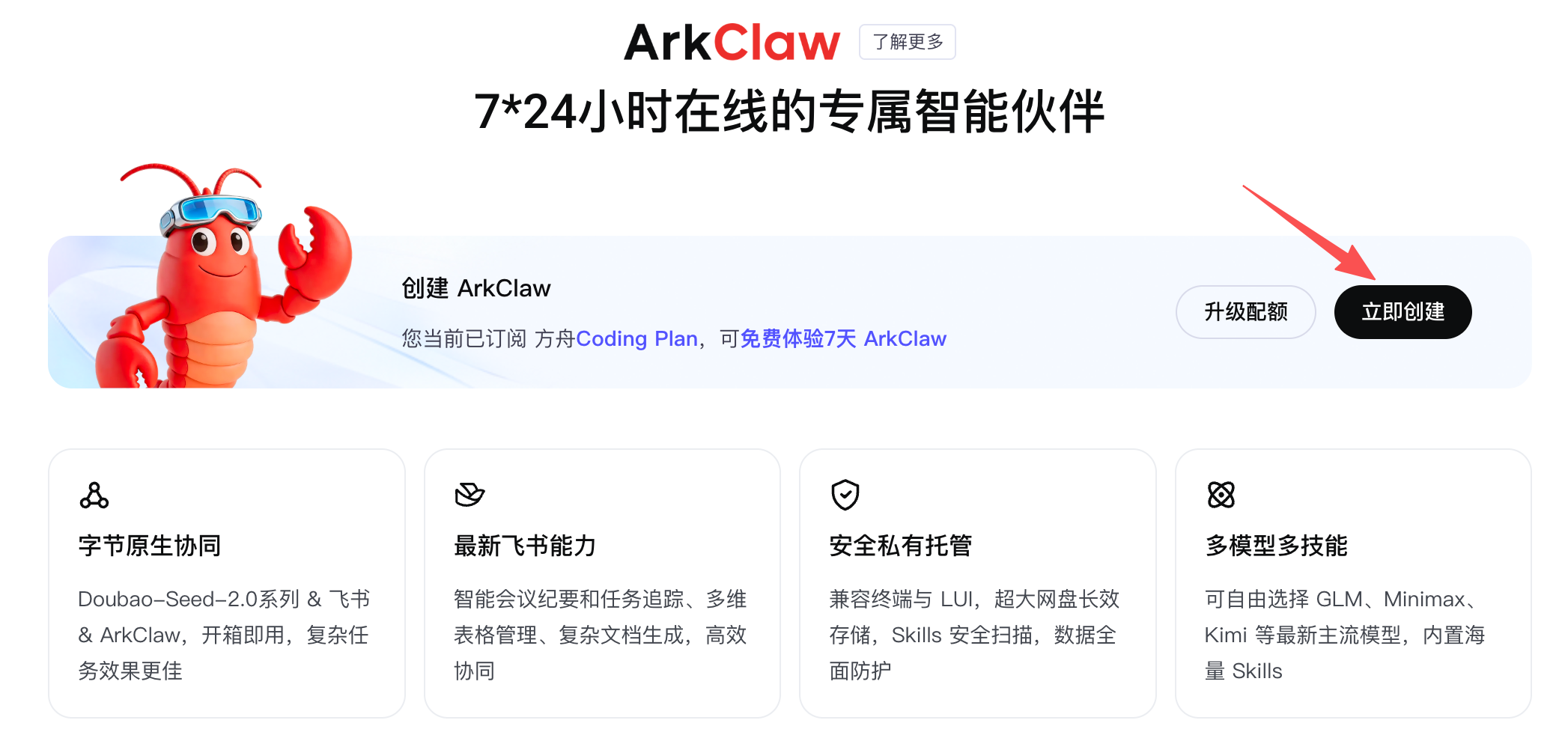 Coding Plan 现在可以抢先体验 ArkClaw: