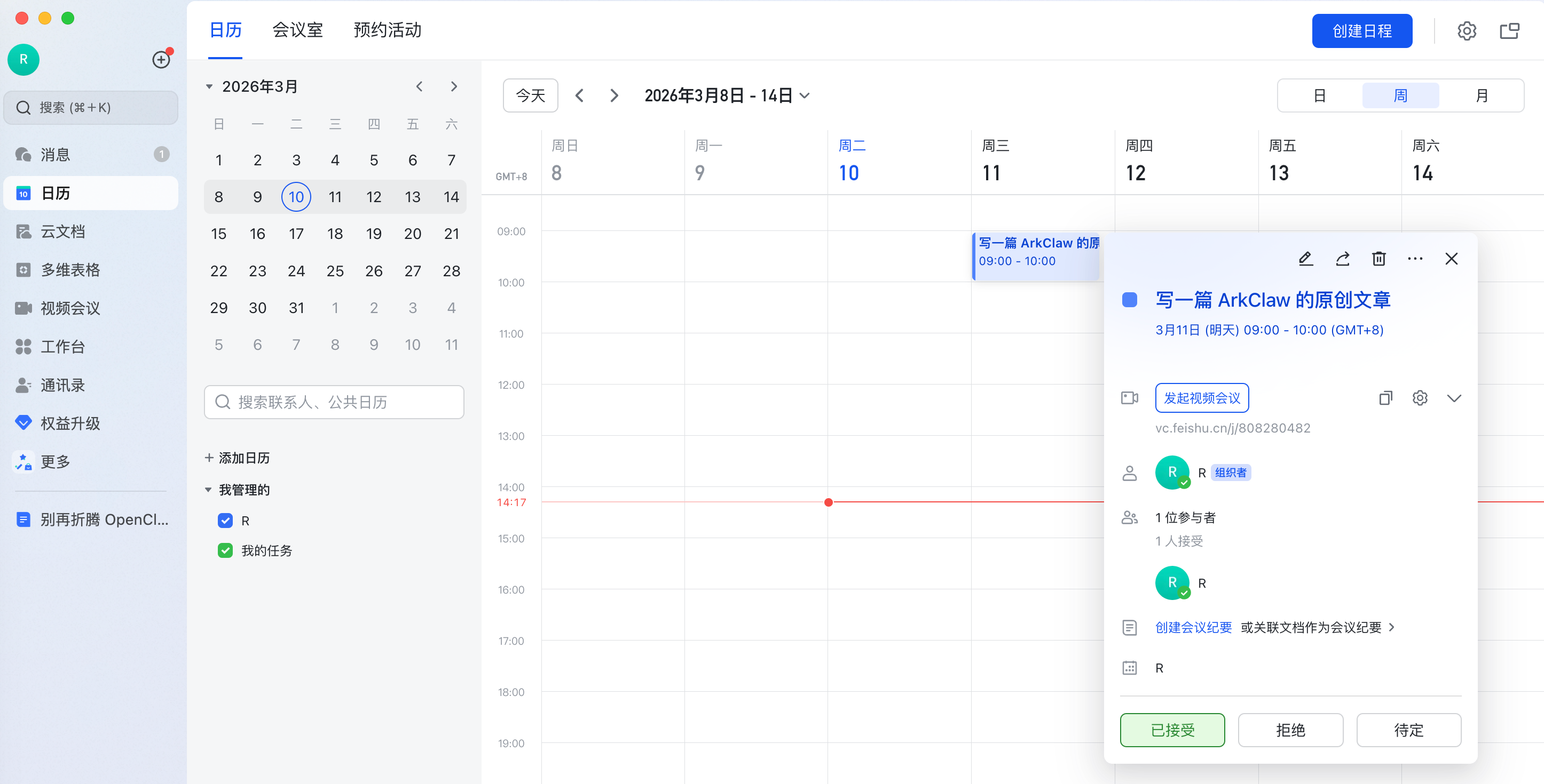 所以,学会了这点,我们再也不用担心忘记重要的事情了,也不用手动去创建日程了,一句话 ArkClaw 就帮你搞定了。