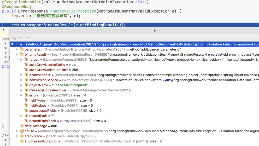 注:因为参数绑定校验异常的异常信息的获取方式与其它异常不一样,所以才把这2种情况的异常从 进入 Controller 前的异常 单独拆出来,下面是异常信息的收集逻辑: