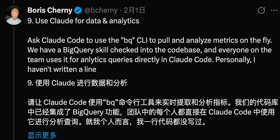 让它用 bq CLI 现场跑 BigQuery 查询,拉数据分析。
