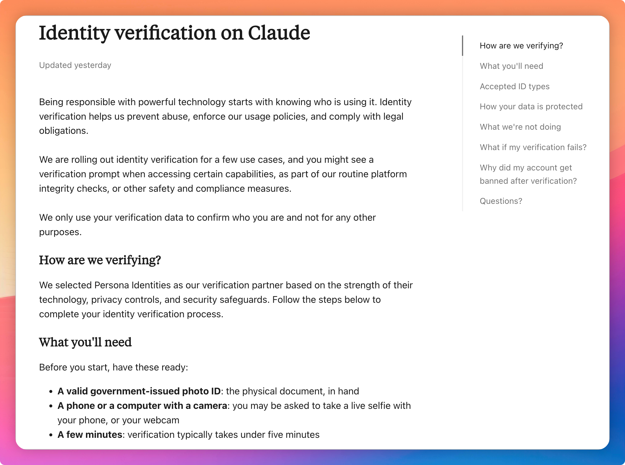 近日,Claude 又开始搞事情了,开始要求实名身份验证了。。