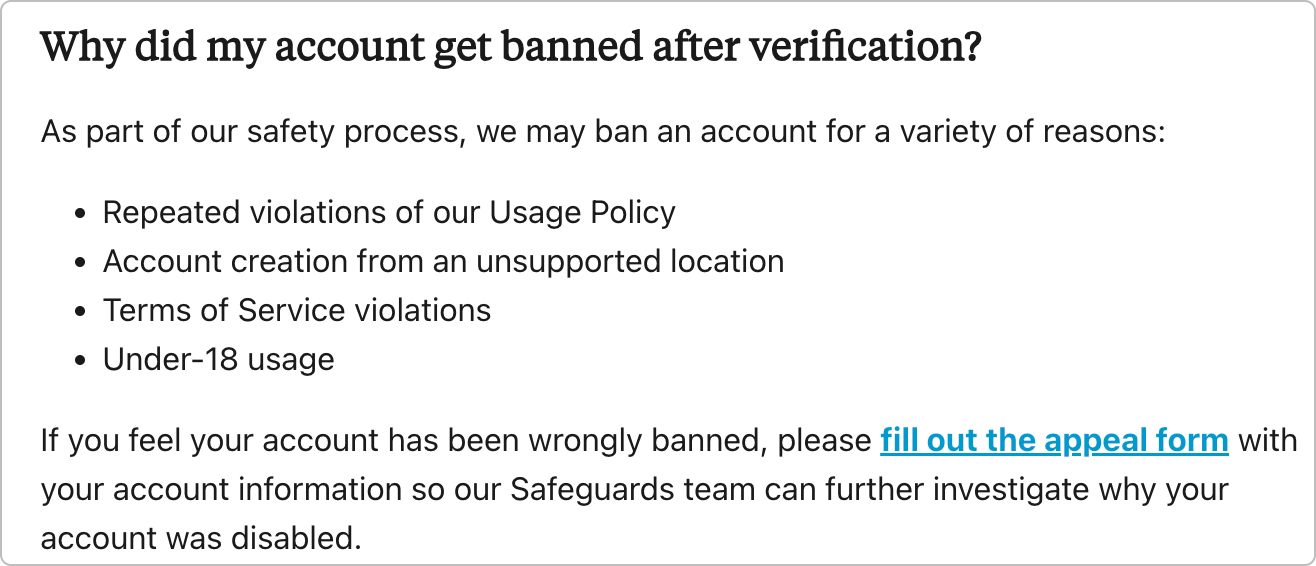 比如,你的账号是在不支持的地区注册的、服务条款违规、未满 18 岁等等。。