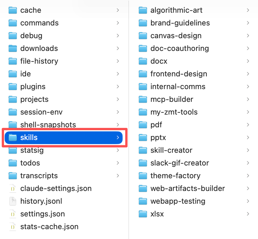 比如,你想使用官方、第三方的 Skills,只需要把它们仓库的技能目录复制到 ~/.claude/skills 目录下即可: