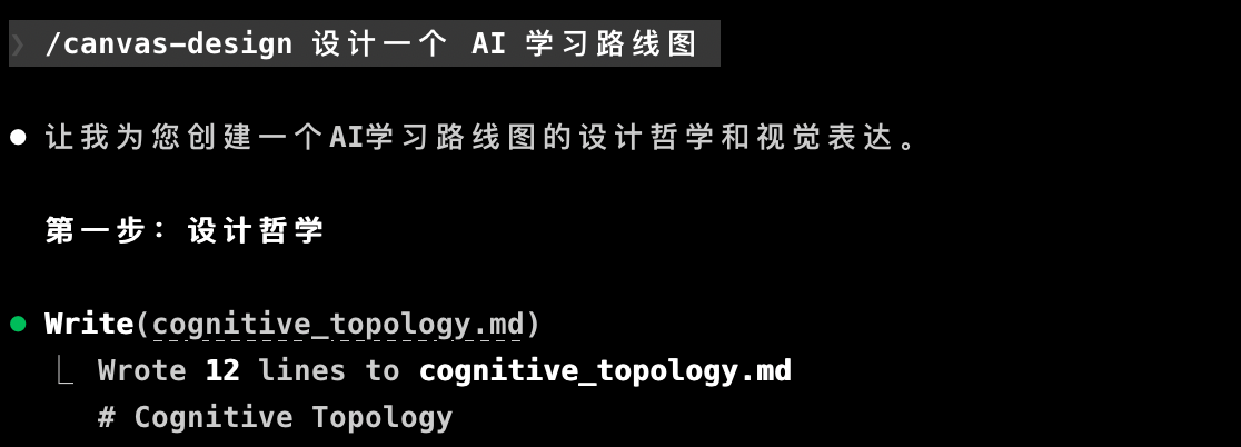 你也可以通过 /xx 来手动引用要使用的 Skill,比如我明确知道官方有一个 canvas-design 技能,那我可以这样手动引用: