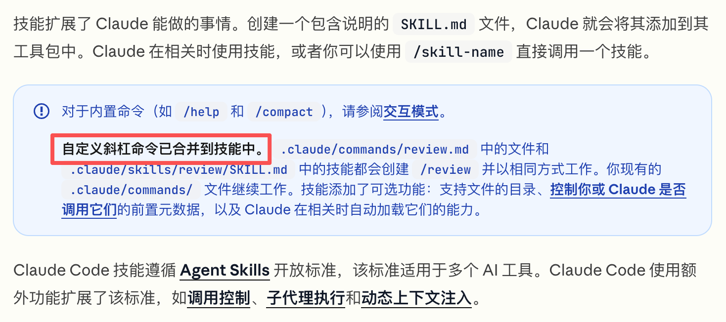 合并归合并,困为 Slash Commands 和 Skills 两者都可以通过 / 手动触发,Slash Commands 并不能自动触发,因为它没有像 Skills 那样定义元数据。