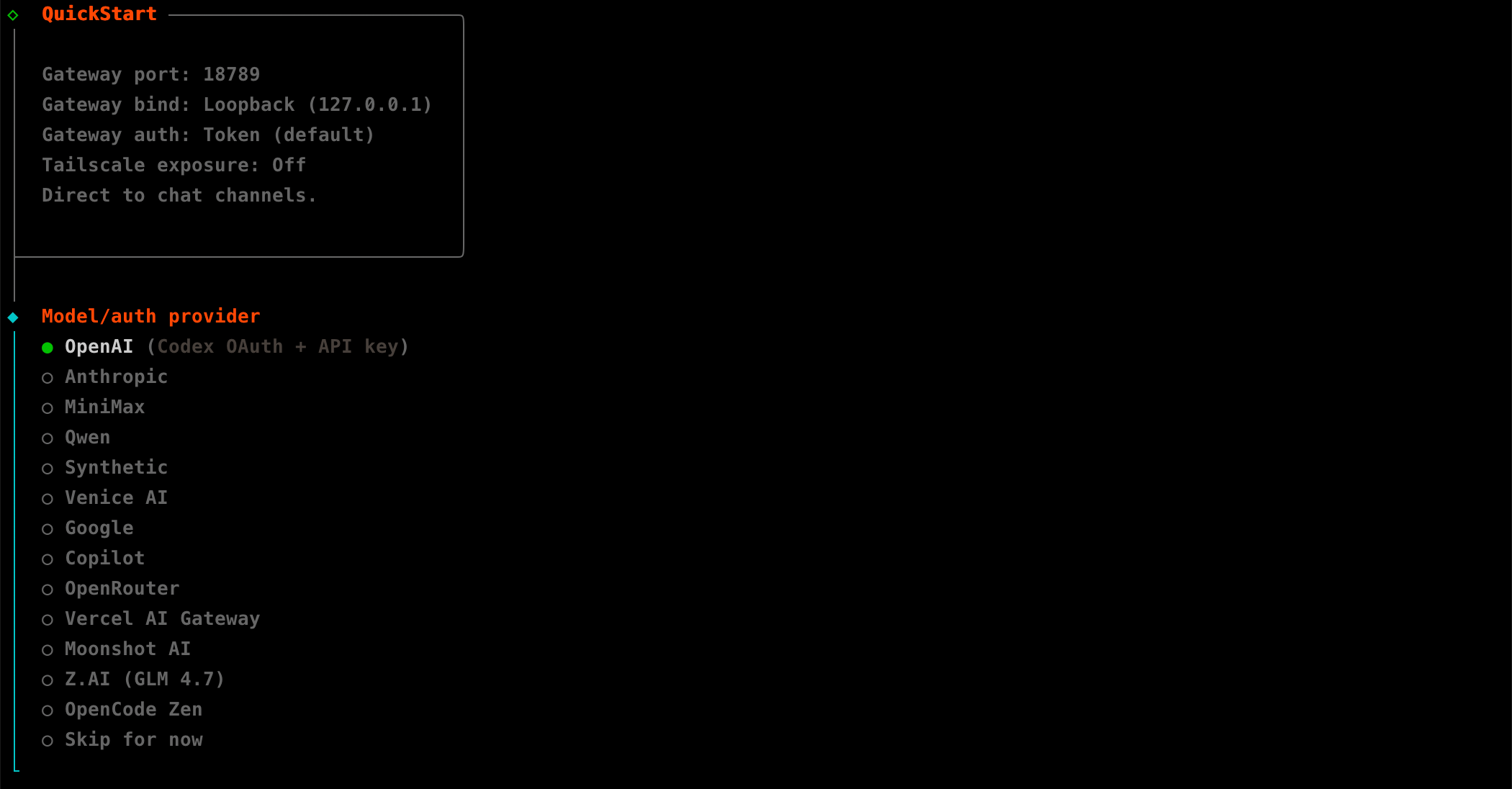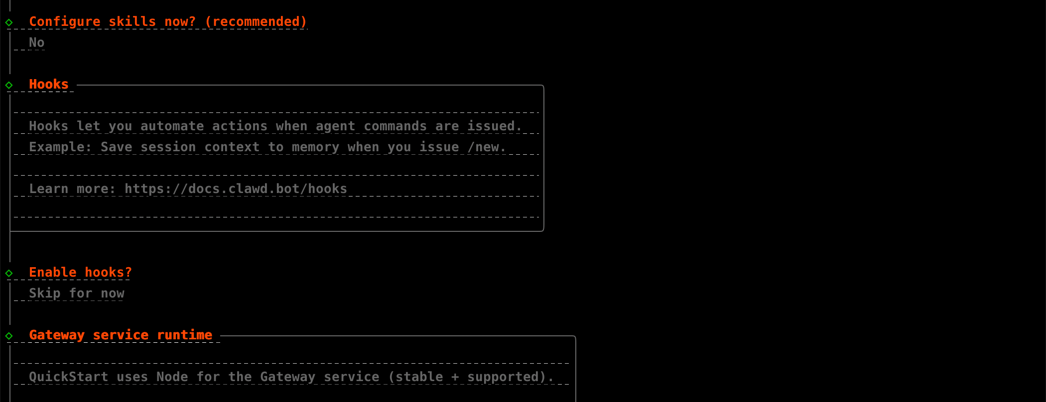 也都可以跳过后面配置,然后再安装 Moltbot Gateway 网关。