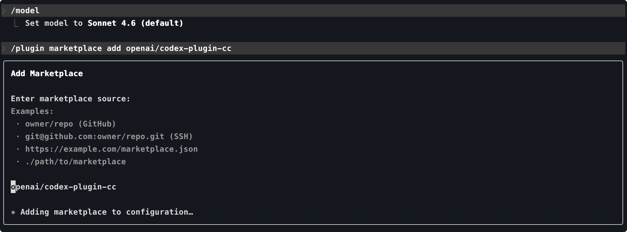 /plugin marketplace add openai/codex-plugin-cc