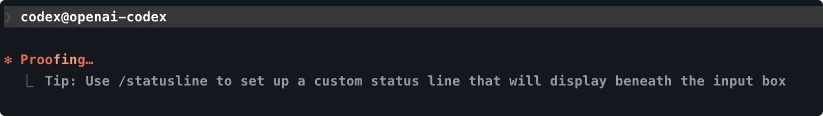 这个命令会告诉你 Codex 是否准备就绪,如果缺少 Codex 且可使用 npm,它可以为你安装 Codex。