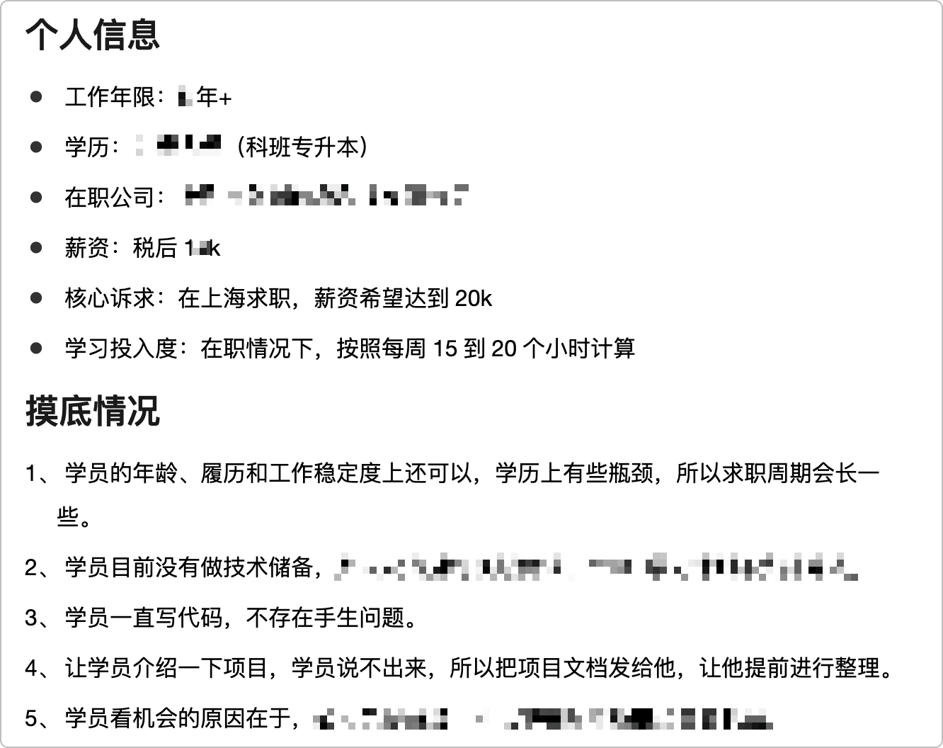 这兄弟也是,加入面试辅导后,首先就做了一个摸底了解下他的情况: