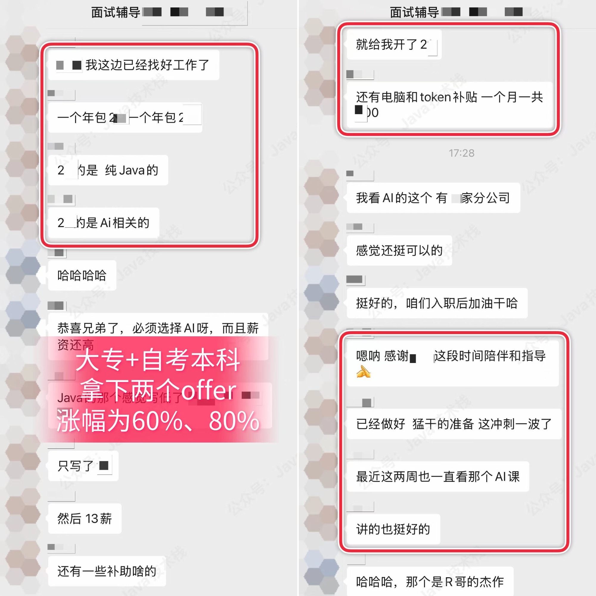 很快,这兄弟就已经找好工作了,而且不是一个机会,是拿到了 2 个 offer:其中一个是纯 Java 方向,另一个是 AI 相关方向。