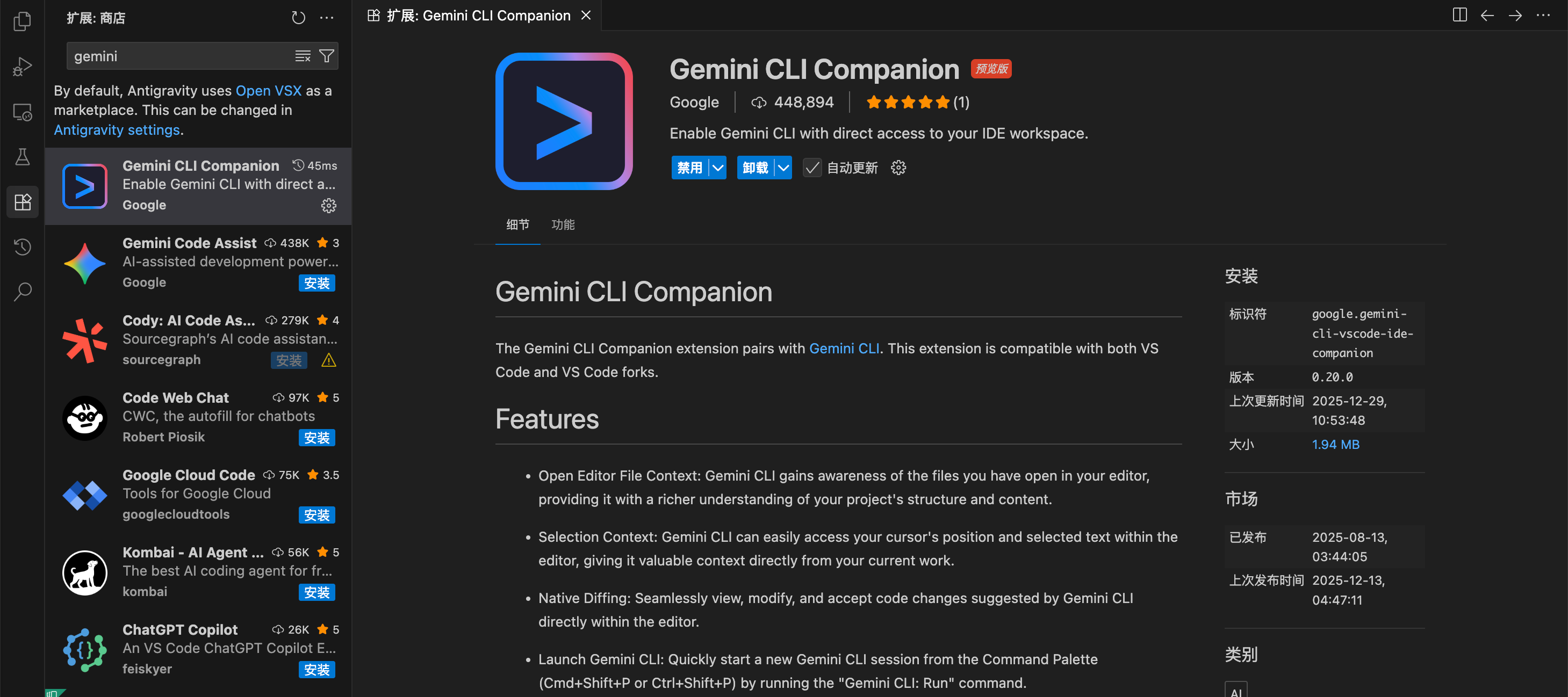 Gemini CLI Companion 这个插件可以在 VS Code 中和 Gemini CLI 搭配使用,支持 VS Code 以及各种 VS Code 分支版本,比如:Cursor、Antigravity 等等,简直不要太方便!