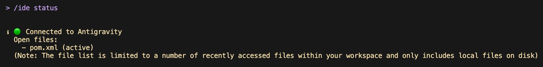 然后使用 /ide status 查看是否连接成功: