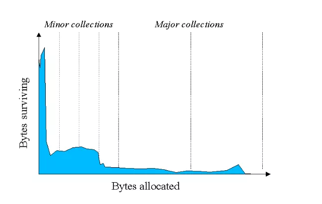 之前说过,逐一标记和压缩 Java 虚拟机里的所有对象非常低效:分配的对象越多,垃圾回收需时就越久。不过,根据统计,大部分的对象,其实用没多久就不用了。JVM 与 Linux 的内存关系详解,这篇推荐阅读。