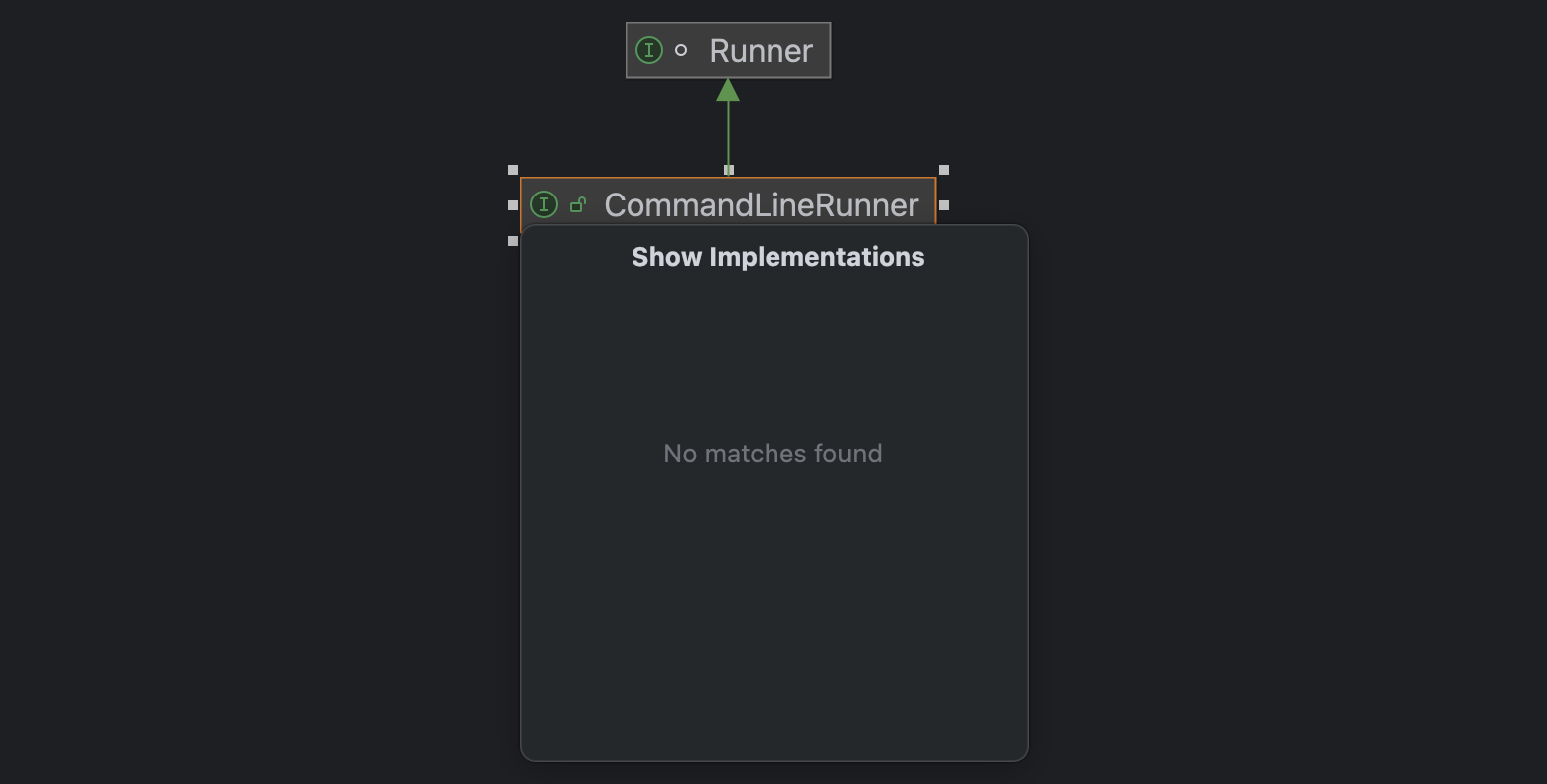 如果真的没有父类或者实现类,会显示「No matches found」这是正常的。