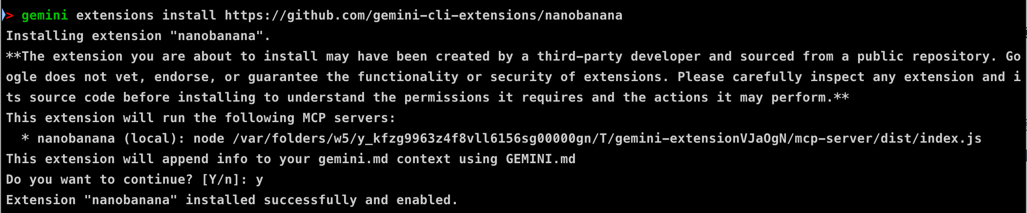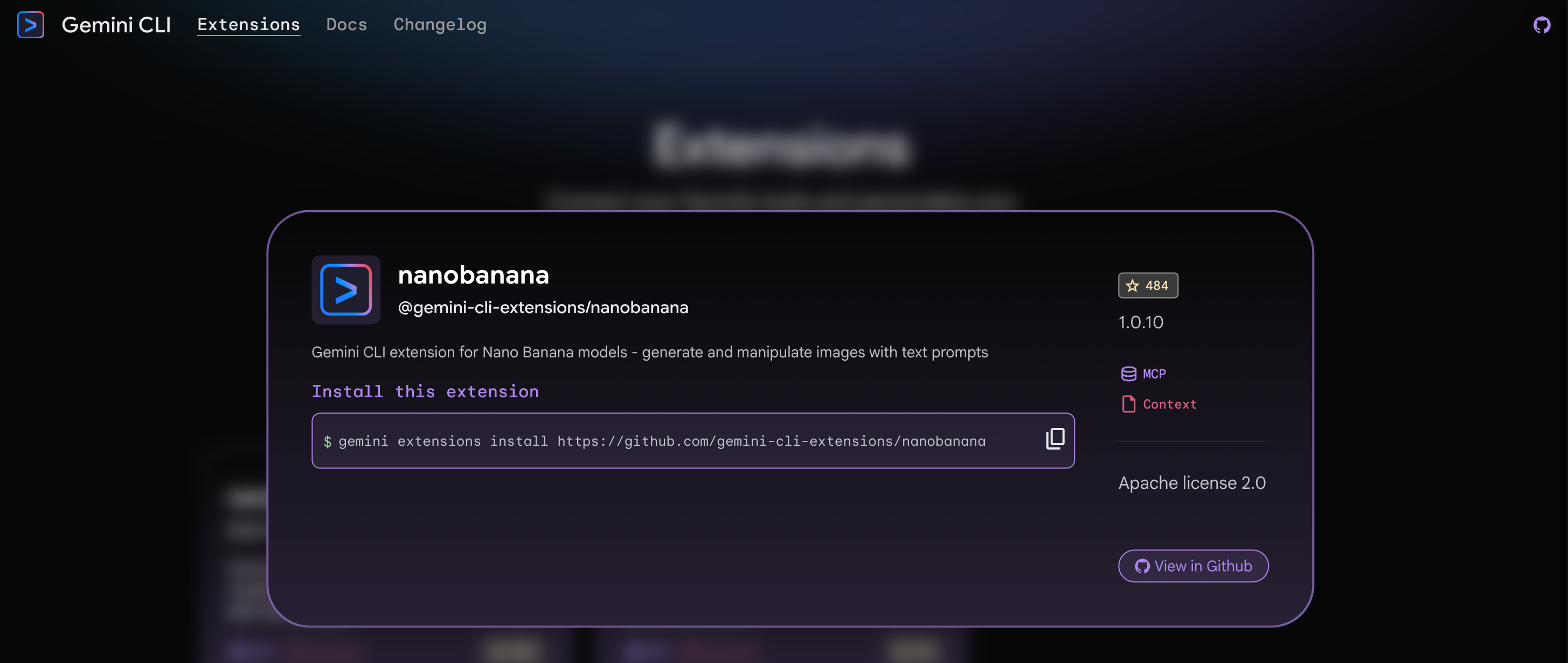 Nano Banana 在 Gemini CLI 中是以「插件」的形式提供的,并且需要设置一个已经设置了结算的 API Key。