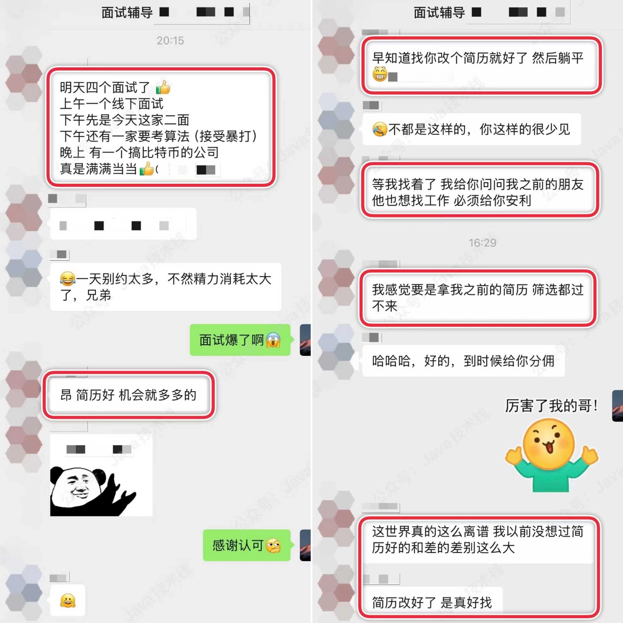 兄弟感叹:简历好,机会就是多多,要是拿他之前的简历筛选都过不了,早知道找我们改个简历就好了,然后躺平,还说要给我们推荐朋友来面试辅导呢。