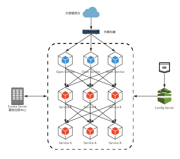 Spring Cloud使用了Zuul作为服务网关组件,图中Open Service即是服务网关,Service A,B是内部实际的业务服务,通过Open Service对外进行内部服务的请求的路由、过滤等操作。