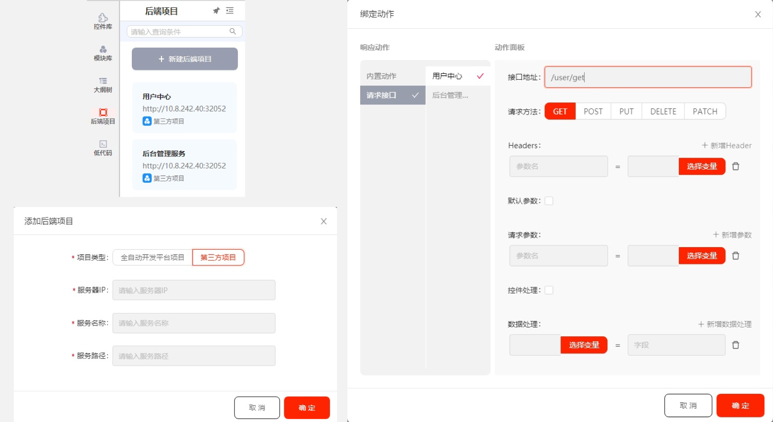 - 前端平台: 可视化开发、多终端兼容、丰富的组件/模板库、灵活数据对接、可私有化部署;