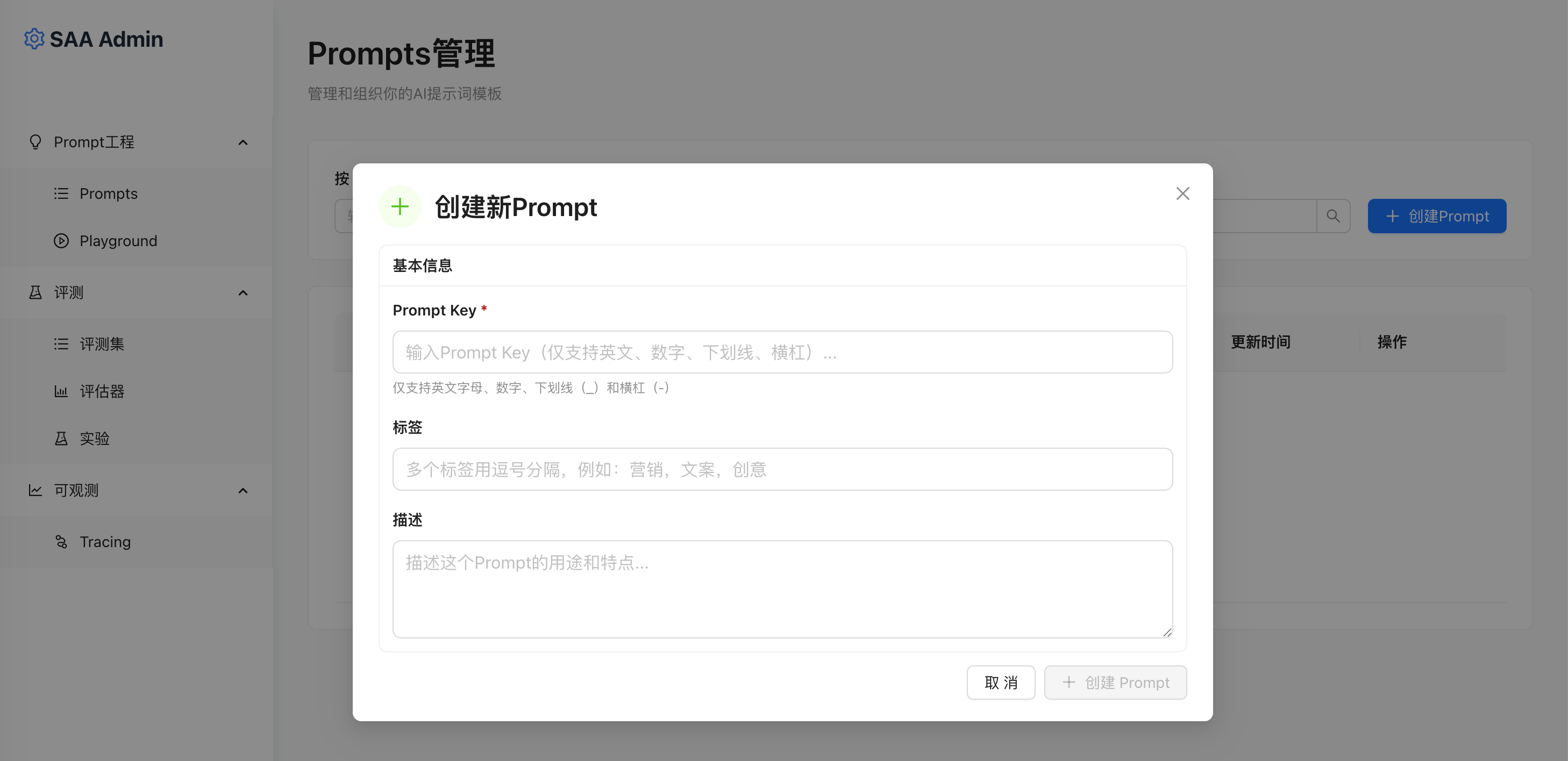- Prompt 模板管理: 创建、更新、删除 Prompt 模板