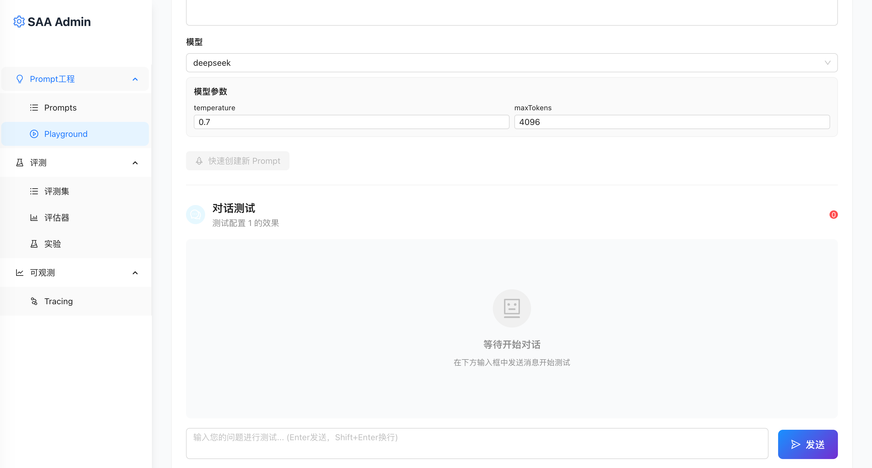 即可使用 Spring AI Alibaba Admin 平台,可以在平台中对 Prompt 进行管理、调试、评估、可观测等操作。