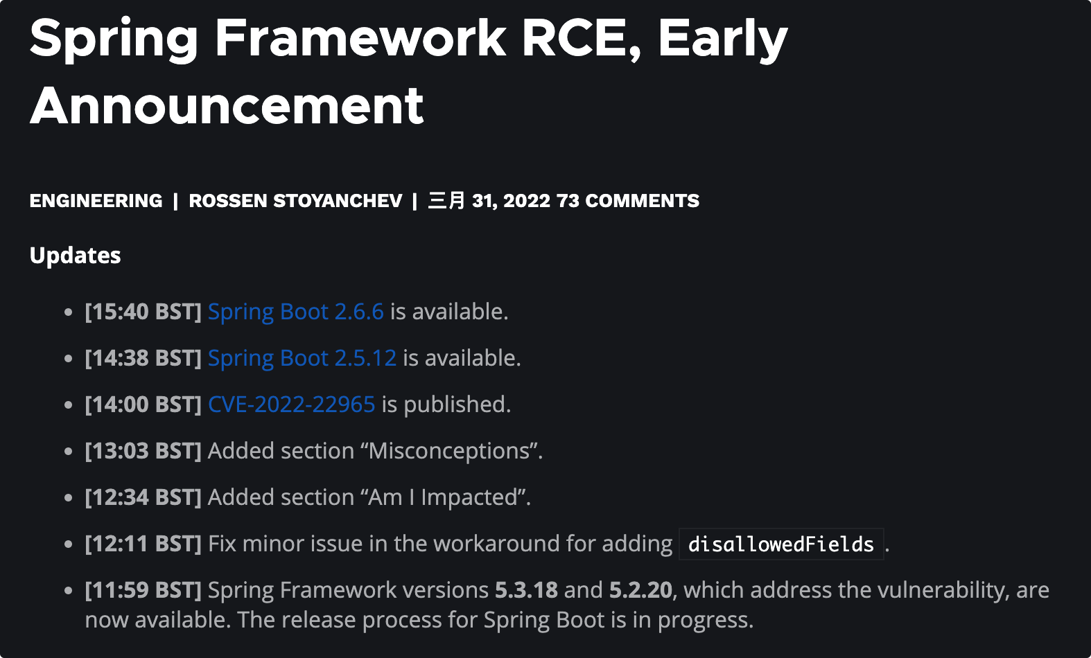 https://spring.io/blog/2022/03/31/spring-framework-rce-early-announcement