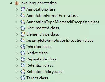 其中Annotation是注解的基本接口,所有的注解都继承这个接口。