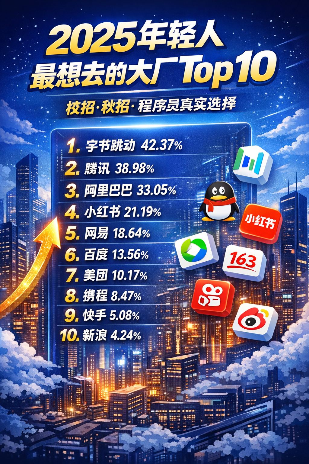 最近在网上看一份 2025 程序员最想去的大厂排行榜: